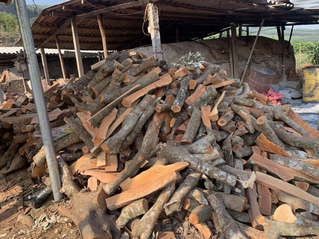 Đầu tiên các thân gỗ to tại vườn được sẻ thành các khúc gỗ nhỏ hơn khoảng 35-45 cm (như hình thứ 3), các khúc gỗ này cho vào lò, sếp đều đặn, nung yếm khí liên tục trong 7 ngày.